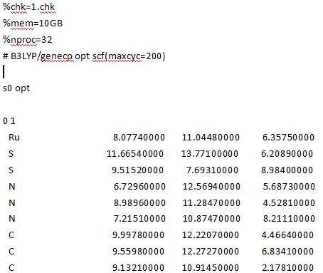 我传两张图,一张是开始写的gjf,一张是log报错前的原子表格(是这个表格吗?如果是的话,是直接按列复制到gjf就行还是得把原子名称写出来)