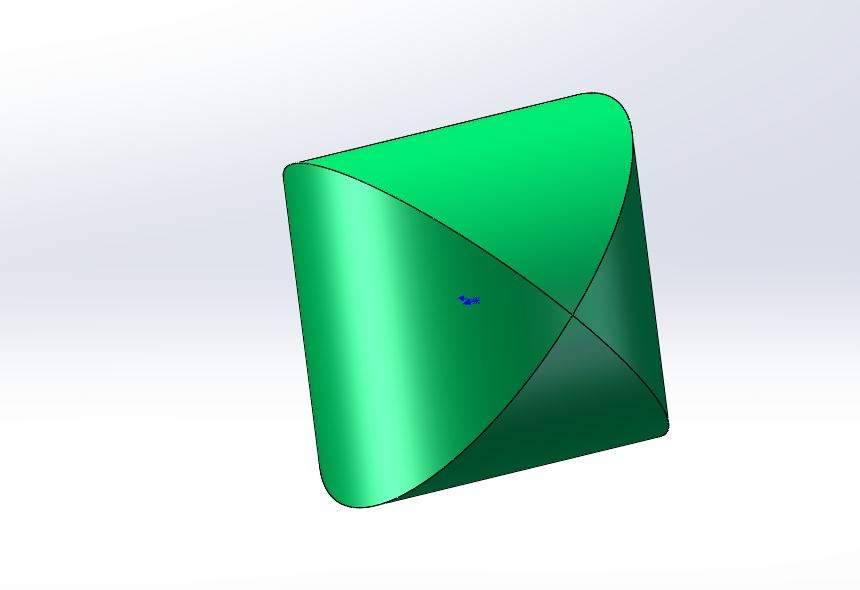 画个矩形,内接圆球,任一矩形表面做两根中心对角线,把对角线投影到内接圆球的表面上,连接投影曲线做曲面/或切割球体,删除多余的图形,完成。
