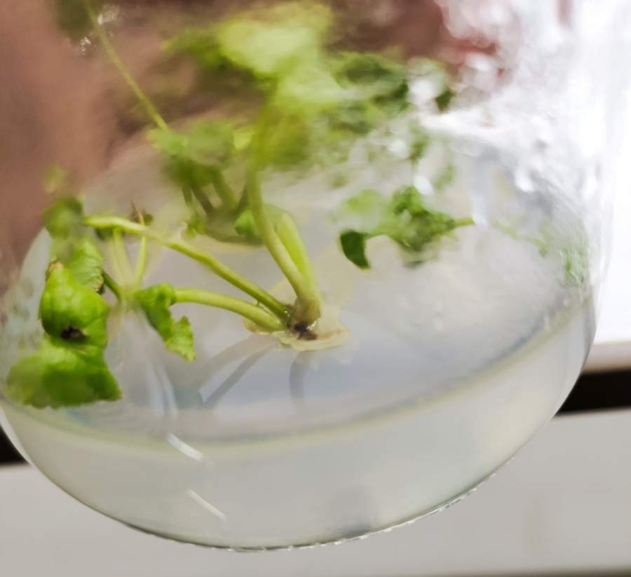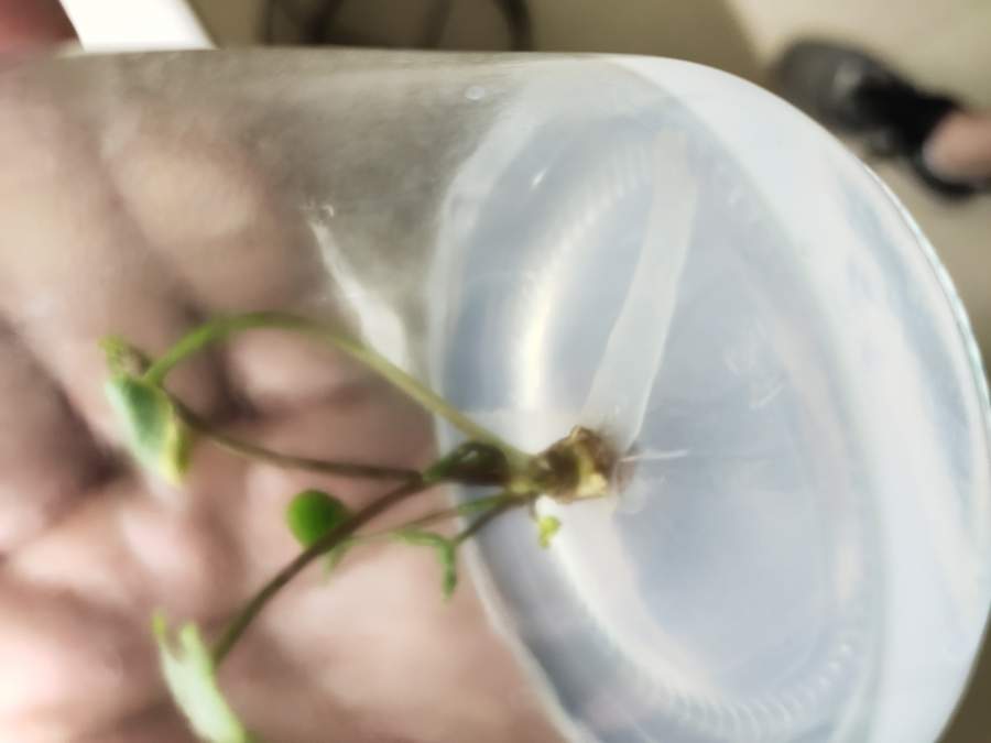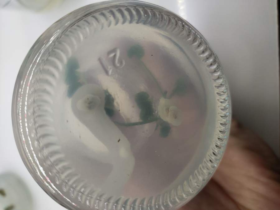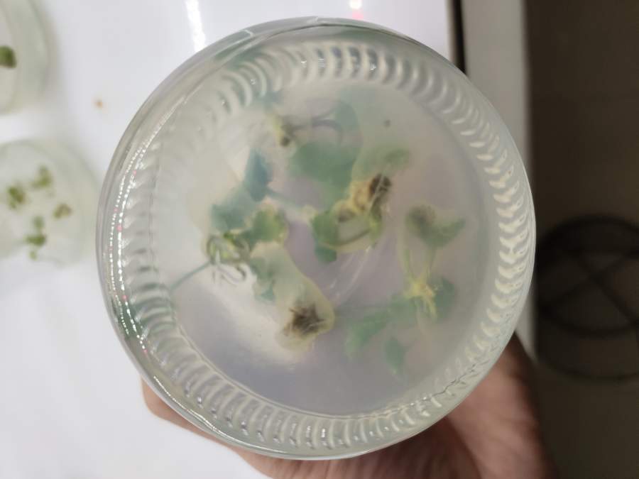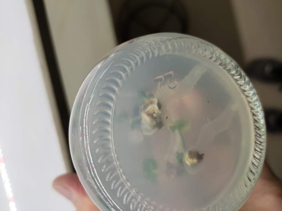 基本上,初代培养的时候没问题,但是继代的时候有部分出现这种情况,接种的时候渗出水的地方培养几天会有黄白色的分泌物,但看起来不像是染菌,闻着有股酸味。出现这种情况导致组培苗插入培养基的部分会褐化,小苗生长不正常。