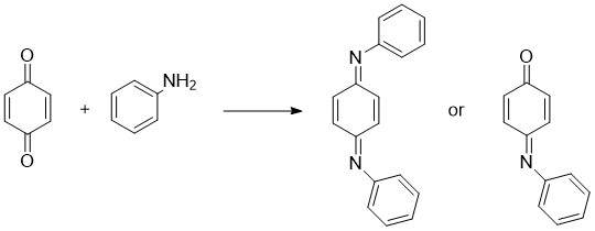 苯醌和苯胺生成亚胺 苯醌:苯胺= 1:2.2投料 二氯为溶剂 对甲苯磺酸为催化剂 60℃ 氮气保护下 原料无法反应完 重结晶得到固体送核磁