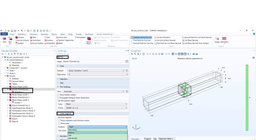 求问comsol后处理中怎么把颜色图例从横向改为纵向并放置在几何体下面? 返回小木虫查看更多