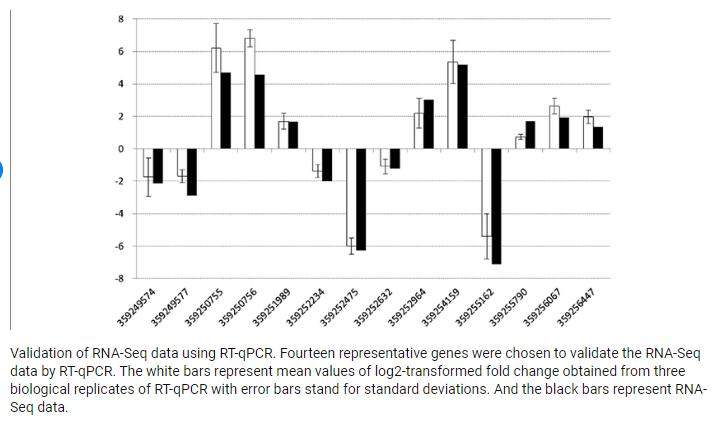 在很多文献中,用qRT-PCR验证RNA-seq的结果中,往往是qRT-PCR有误差线(error bar)而RNA-seq没有,这不是个例,很多文献的图就是这样的。我贴了几个文献的截图,但是这些文献表明进行测序都是至少三次生物学重复的,所以没有误差线肯定不是因为没有做生物学重复。但是为什么RNA-seq没有误差线呢?想请教一下专业的回答。谢谢各位赐教