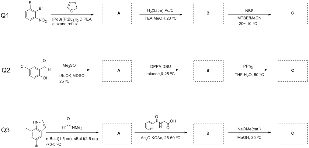 这些题目是官能团转化题目,请各位虫友根据反应条件给出正确的结构,这些化合物主要为药物中间体。
