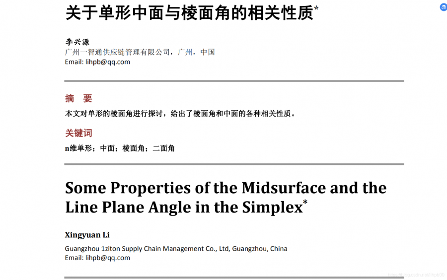 本文对单形的棱面角进行探讨,给出了棱面角和中面的各种相关性质。
