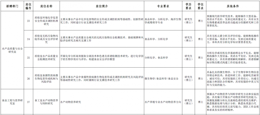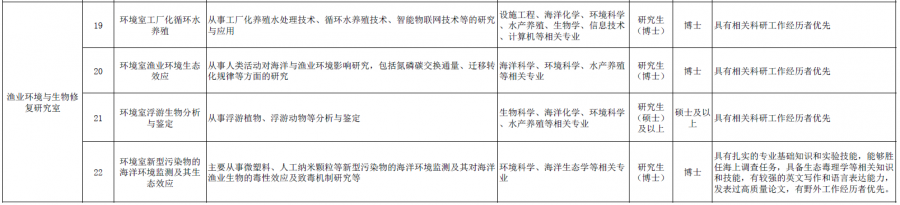 中国水产科学研究院黄海水产研究所2021年公开招聘工作人员公告