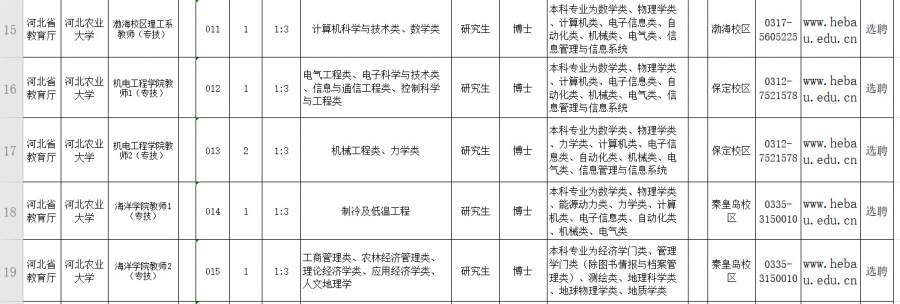 河北农业大学招聘单位联系方式