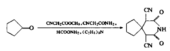 第二题,环戊酮与氰基乙酸乙酯缩合成α,β-不饱和酯,第二分子的氰乙酰胺与后者发生Michael加成,最后环合成酰胺。
