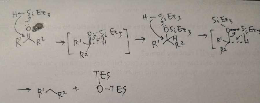 求助反应机理谢谢 三乙基硅氢和TFA脱羰基.png 返回小木虫查看更多