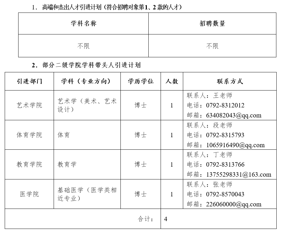 九江学院2021年高层次人才招聘公告