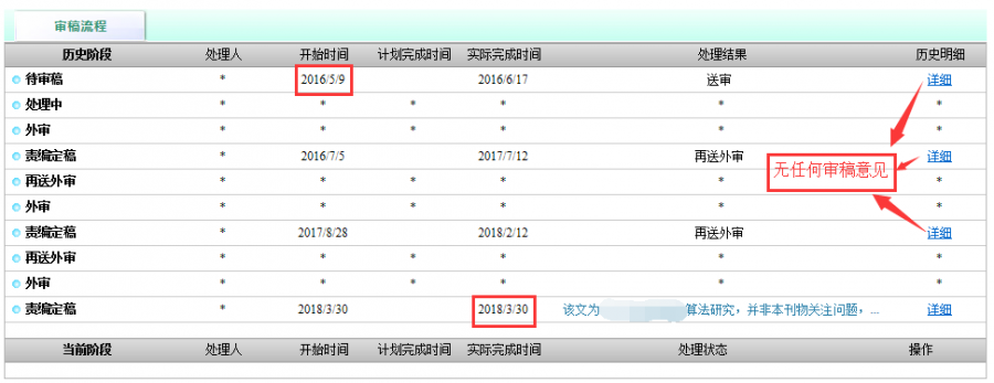 2016年5月9号投稿,中间经历了“一次外审,一次责编定稿,二次外审,二次责编定稿,三次外审,三次责编定稿”,最后2018年3月30日拒稿,拒稿理由是:非刊物关注问题,不...