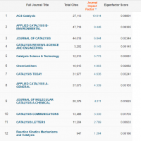 2016部分催化累期刊影响因子