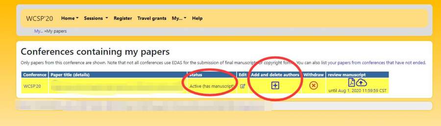 请问大佬,wcsp投稿后出现以下页面是投稿成功了吗,论文中几个作者已经表明,还需要在下面图片位置添加作者吗wcsp.jpg