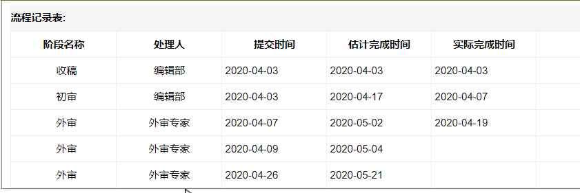 3.10投稿3.24初审4.1初审通过4.2送审流程图上写的是估计完成时间是5.12,想问大家已经外审了20多天,希望大吗。还是说专家没看呀。这个期刊一般是多久给回复呢