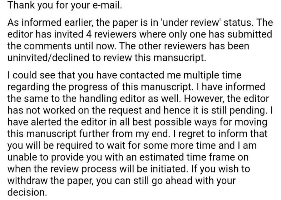 submittojournal一周了,正常吗?不会又要悲剧了吧!虽说疫情期间会影响,但总不至于不到编辑那吧?