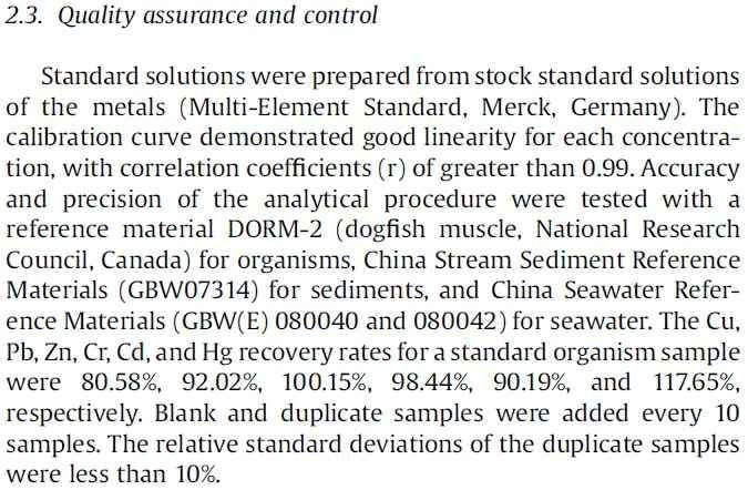 在文献上看到测食物中重金属浓度还需要进行质量控制,想知道用于这一用途的标准参考物是如何购买的,以及价格。感谢!!!!附上文献部分原文截图(ZheHao,LihongChe...