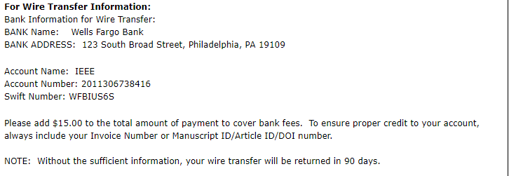 请教各位大大,ieeeaccess交版面费,由于没有visa卡,选择了银行汇款。是按下面的帐户,把版面费汇过去,再备注上论文编号,就ok么了?20190309132825...