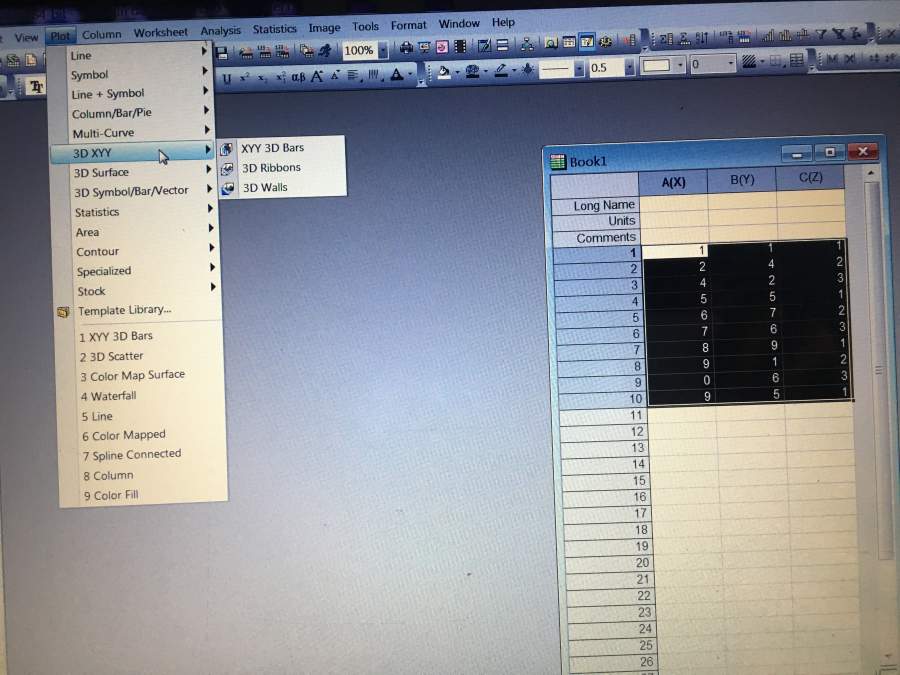 朋友们好!请教论文作图软件Origin Pro9中关于plotXYZ的问题