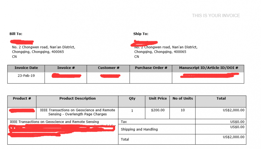 求助,关于IEEE TGRS 的invoice没有单位的问题