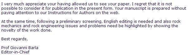 前段时间给RockMechanicsandRockEngineering期刊投稿,论文格式基本上是按照作者说明中的要求弄的,但可能没有十分严格,前几天收到编辑的退稿信,如...