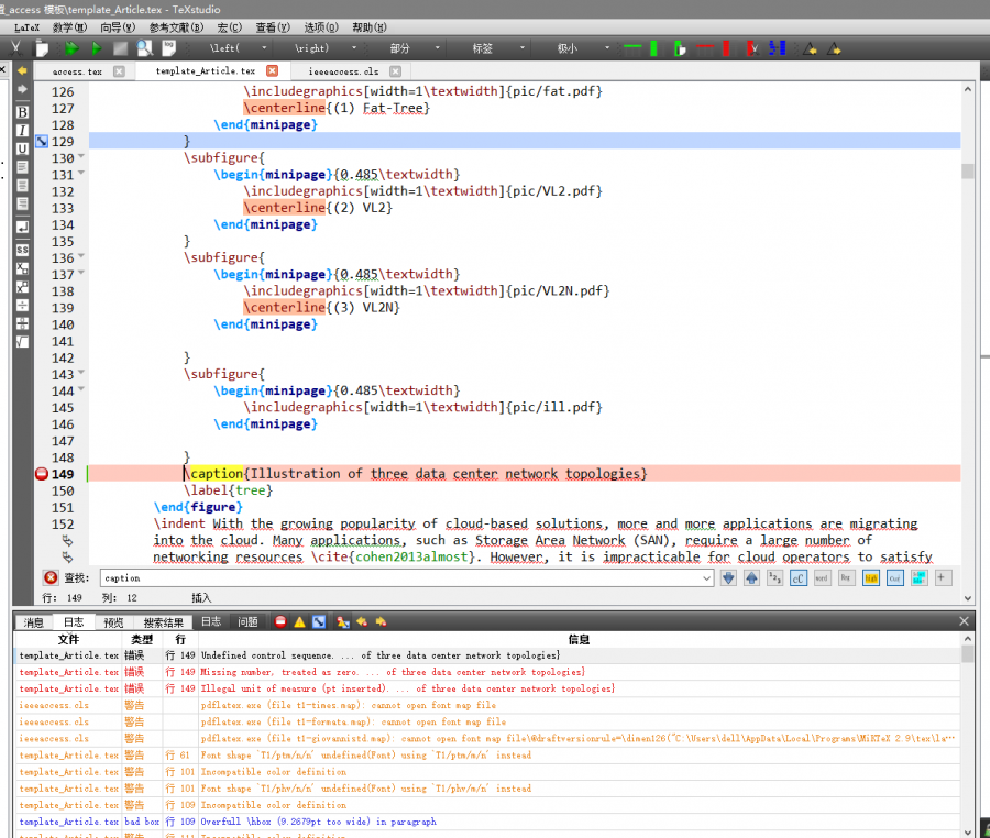很奇怪,这个模板下图片的标题编译会报错。我用的是graphicx和subfig这两个包,IEEE模板下使用正常,一到Access模板就出问题