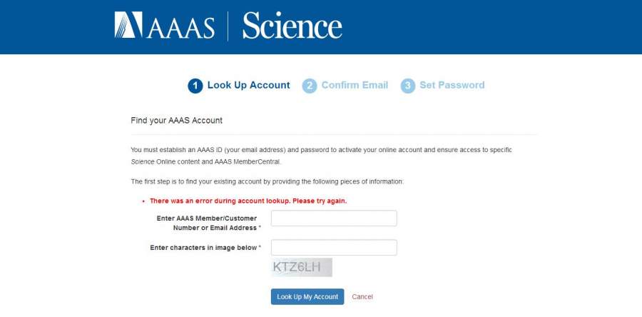 想注册一个science账号,输入邮箱后,让我输入验证码,我输了然后显示“Therewasanerrorduringaccountlookup.Pleasetryagai...