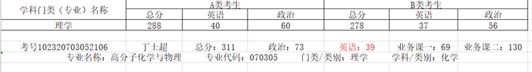 总分311政治73英语39有机化学69高分子化学130跪求调剂!希望有老师可以收我!