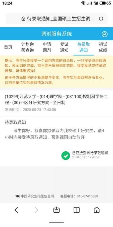 成功调剂江苏大学