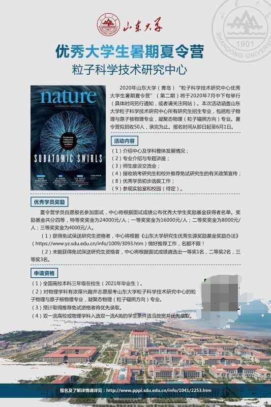 山东大学粒子科学技术研究中心暑期夏令营招募中'http://www.pppi.sdu.edu.cn/info/1041/2253.htm'