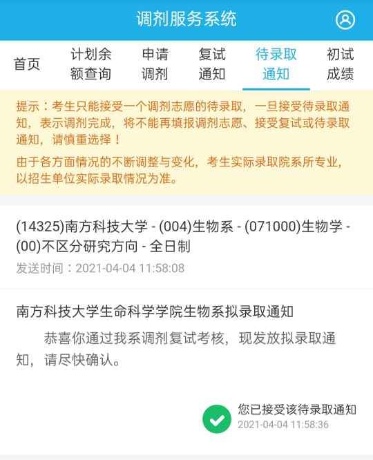 一志愿中山初试第二被刷,选择调剂到南科大生物系上岸。大家谨慎参加中山生物学的调剂复试,一定要做好万全准备,所有分数段都会刷人的。还好今年复试还算早,调剂还是赶上了