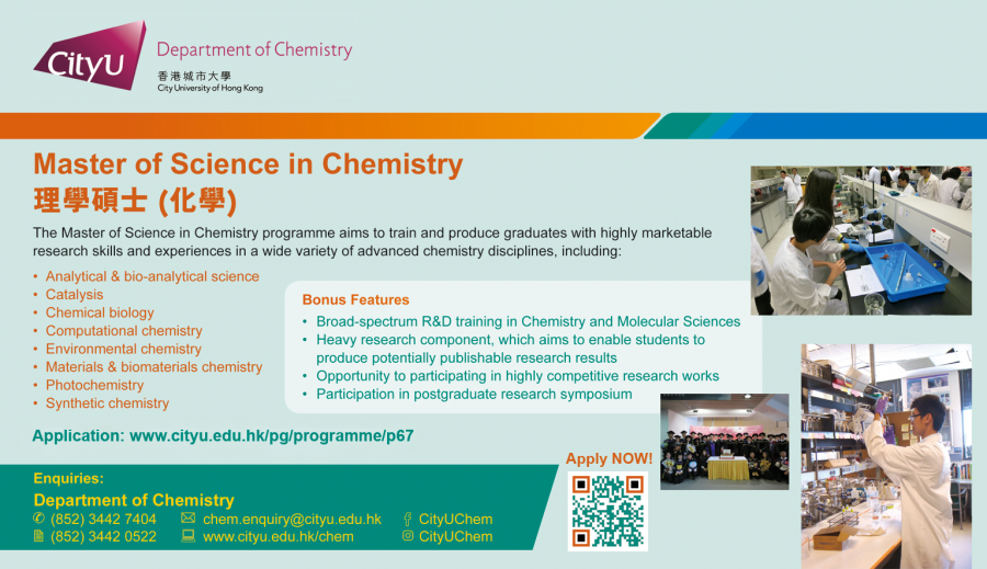 (2020年9月开学) CityU HK 城市大学MSc in Chemistry理学硕士