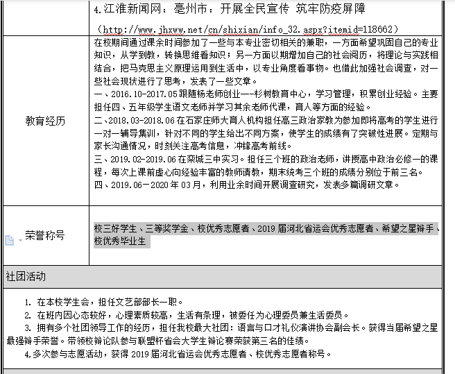 希望老师进一步了解,可以发送简历。在本科期间通过英语四六级,获得国家奖学金,也参加了许多活动,获得证书和荣誉称号。感谢老师阅读!谢谢!