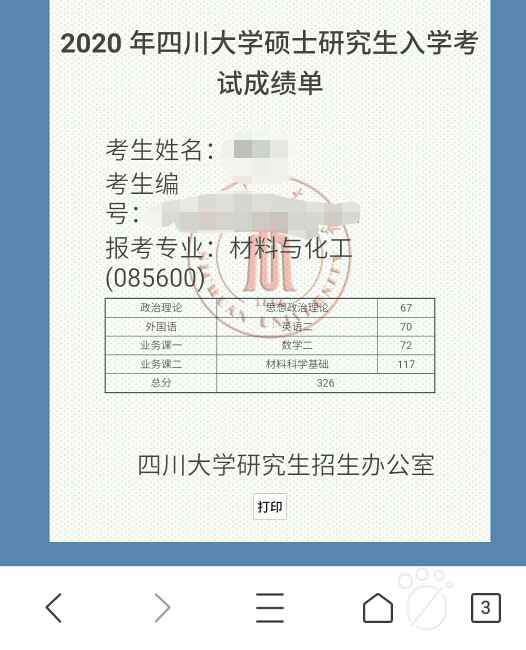 政治:70英语一:55专业课一(普通生物学):95专业课二(生物化学):92一志愿西南大学,生物化学与分子生物学