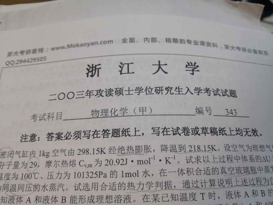 浙大化学考研真题+答案解析有机化学(821)99年-12年物理化学(726)03年-12年