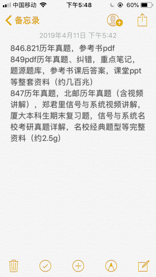 我是19考研的。五选二选的生化和分析。资料包括:真题,笔记。重点汇总,视频课。等以及初试复试经验。还有部分有机化学,微生物,生理的资料。