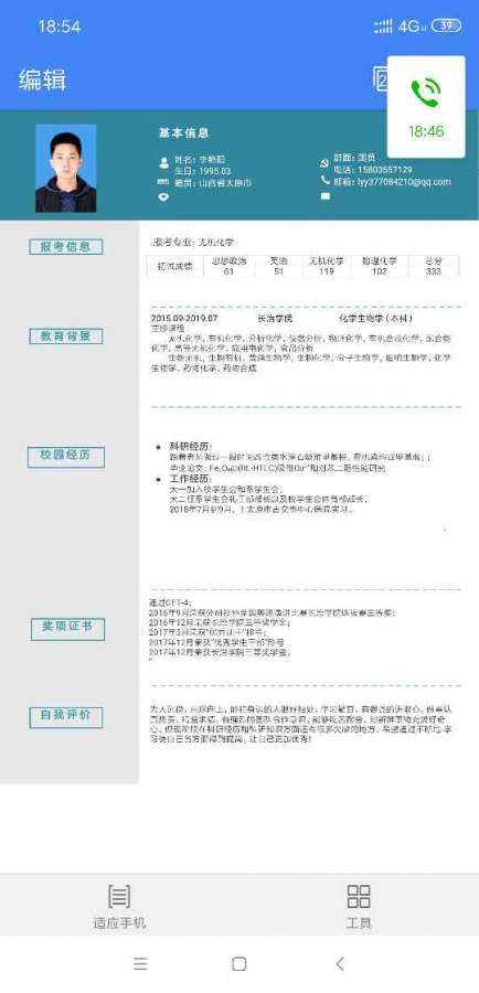 有机化学116物理化学118政治64英语46(六级已过)本人性格开朗,在校期间荣获多个奖项。希望有识之士带我搞科研,谢谢