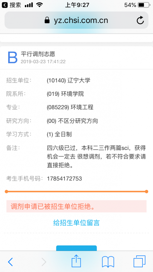 2017年毕业于山东大学药学院制药工程,一志愿中国药科大学药剂专业,药综211,英语68,政治68,四级556,六级465。有一年的药企研发工作经验,希望调剂到药学相关专业。知道现在有些晚了,但我还是想试一试,不想辜负自己的努力!加油!