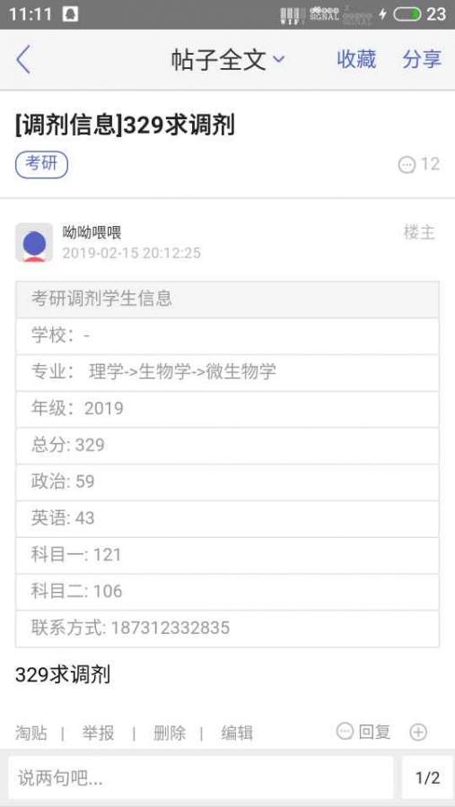 今年考研,本科双非,报考北京某985,化学专业,初试成绩345,政治64,英语42,无机化学127,物化112,给福州大学一位老师发邮件,老师是这样回复“谢谢你就研究生调剂联系我。你的背景很符合我们课题组的需求,并且我也是很看好你将来的发展。你可以积极争取第一...
