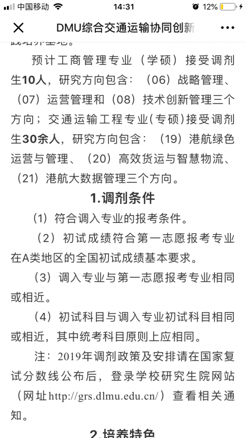 今天看到了大连海事大学综合交通运输协同创新中心的考研调剂信息,要求不高,但是看介绍里说是培养工商管理+交通工程两个方向,我想知道这个中心和大连海事大学的交通运输工程方面的...