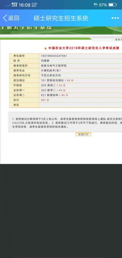 本科:泰山学院,报考中国农业大学求调剂,初试总分:281分,英语:53政治:49专业课(数据结构):95数学二:84