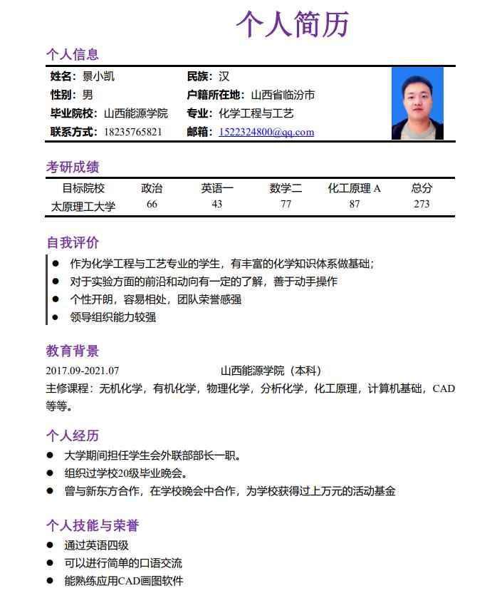 总分:273政治66英一43数二77化工原理87四级通过,学过无机化学,有机化学,分析化学,化工原理,计算机基础联系电话:18235765821