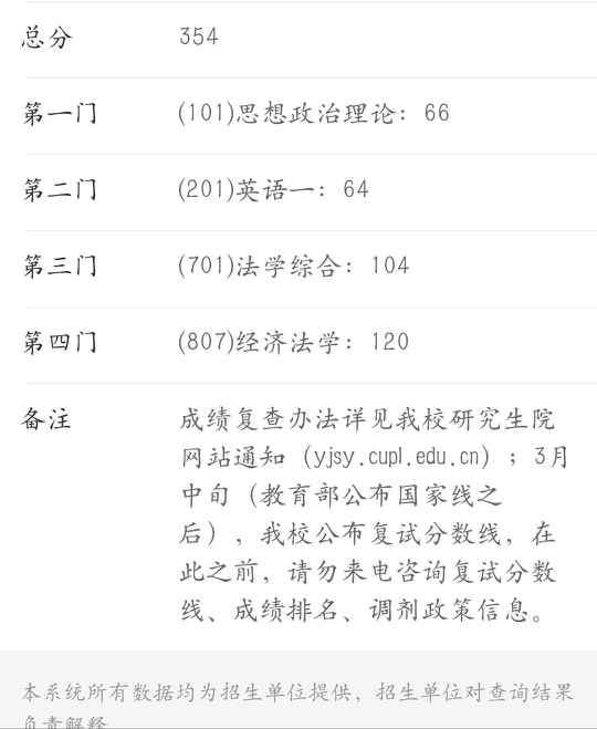 本人一志愿报考中国政法大学,总分354,单科均已过线。本科为双一流学校,六级和司法考试已过,在校期间多次获奖,担任班长职务。本人吃苦耐劳,勤奋好学,十分想留在北京,恳请各...