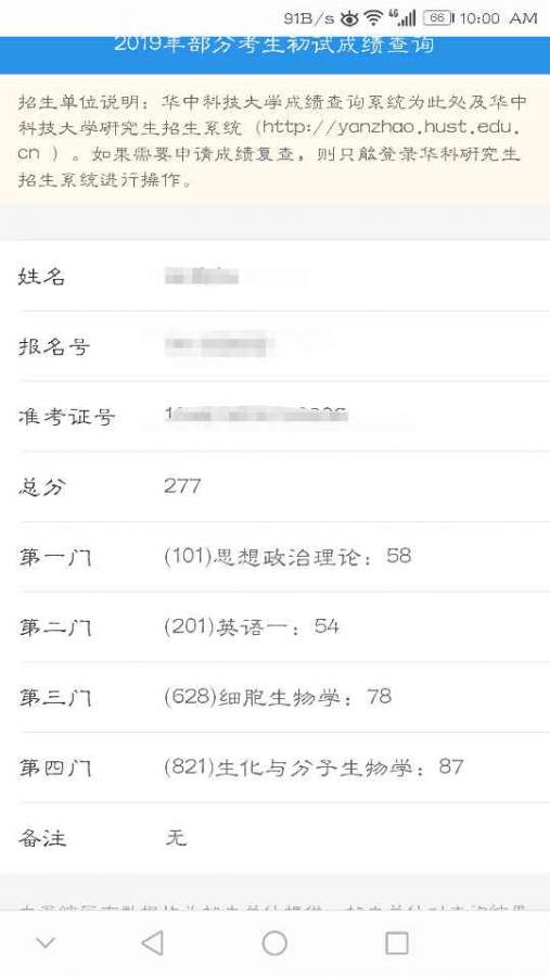 一志愿报考华中科技大学生科院本科二本英语一54政治58细胞生物学78生化与分子生物学87总分277干事认真,熟悉基本生化、微生物实验操作。路过的学长学姐可以给一点建议,谢...