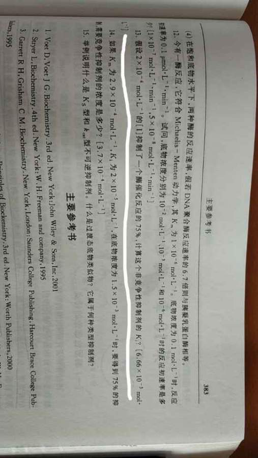 假设2×10-4mol/L的[I]抑制了一个酶催化反应的75%,计算这个非竞争性抑制剂的Ki?