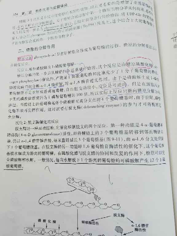 糖原分解第二步,脱支酶的催化反应,有一句话,每当水解脱下1个游离的葡萄糖可磷酸解产生12个1磷酸葡萄糖,这句话应该如何理解?求大神详解,非常感谢