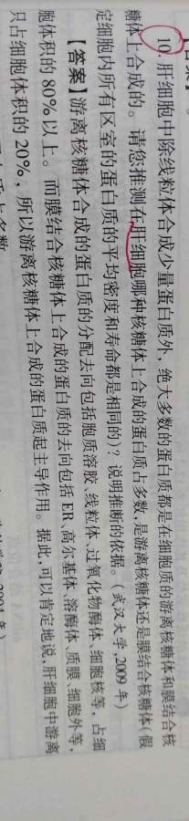 感觉答案不太对,本人认为的是肝细胞分泌了很多蛋白质,而分泌蛋白主要是在膜结合核糖体上合成的,所以应该是膜结合核糖体合成的蛋白比较多