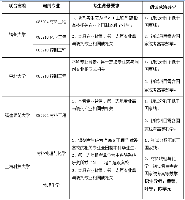 招生学院为湖北师范大学先进材料研究院,考生分数符合国家分数要求即可。物理、化学、材料科学、电子信息,光学等相关专业,授予学位是光学工程一级学科或者化学一级学科。本研究院关注国际上的各类前沿材料研究,目前拥有包括国家级、省部级等的项目支持和经费支撑,研究生可获得...