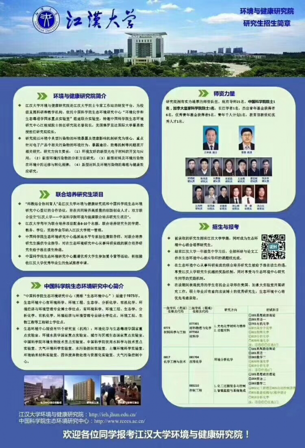 欢迎考研的同学调剂来江大!化学和生物专业背景。硕士二三年级可到北京中科院生态环境研究中心联合培养,享受国科大级别的教育!欢迎大家报名,联系邮箱:'zjli2017163....