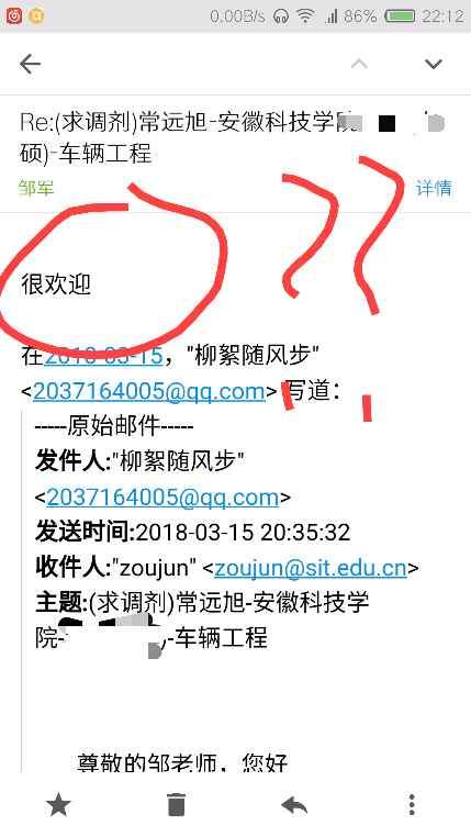 在小木虫上看到的招生信息,给导师发了邮件,内容也就是一些个人简历,老师回了三个字,“很欢迎”。我该怎么回复?