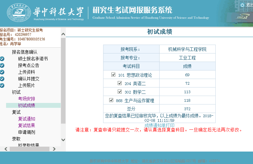 本人华中科技大学应届毕业,初试成绩372,诚求调剂;态度认真,做事负责;曾获优秀团员,通过四级英语;调剂意向:与工业工程相关专业;联系方式:13487099328~}SG...