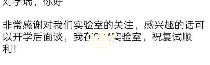 内容是:你的条件符合我实验室要求,欢迎来我实验室交流考察,而且把地址发我了,是直接去拜访一下,还是等调剂系统开了再去埃